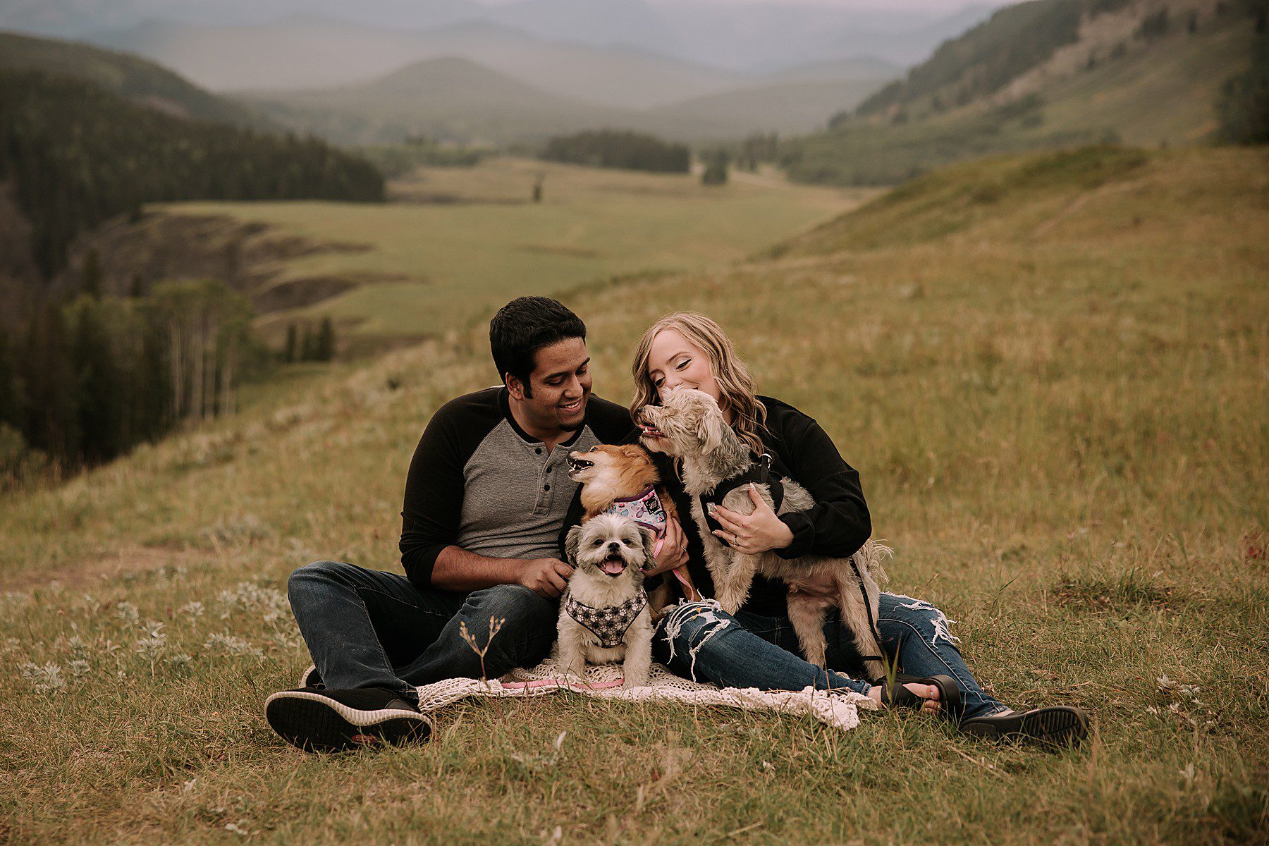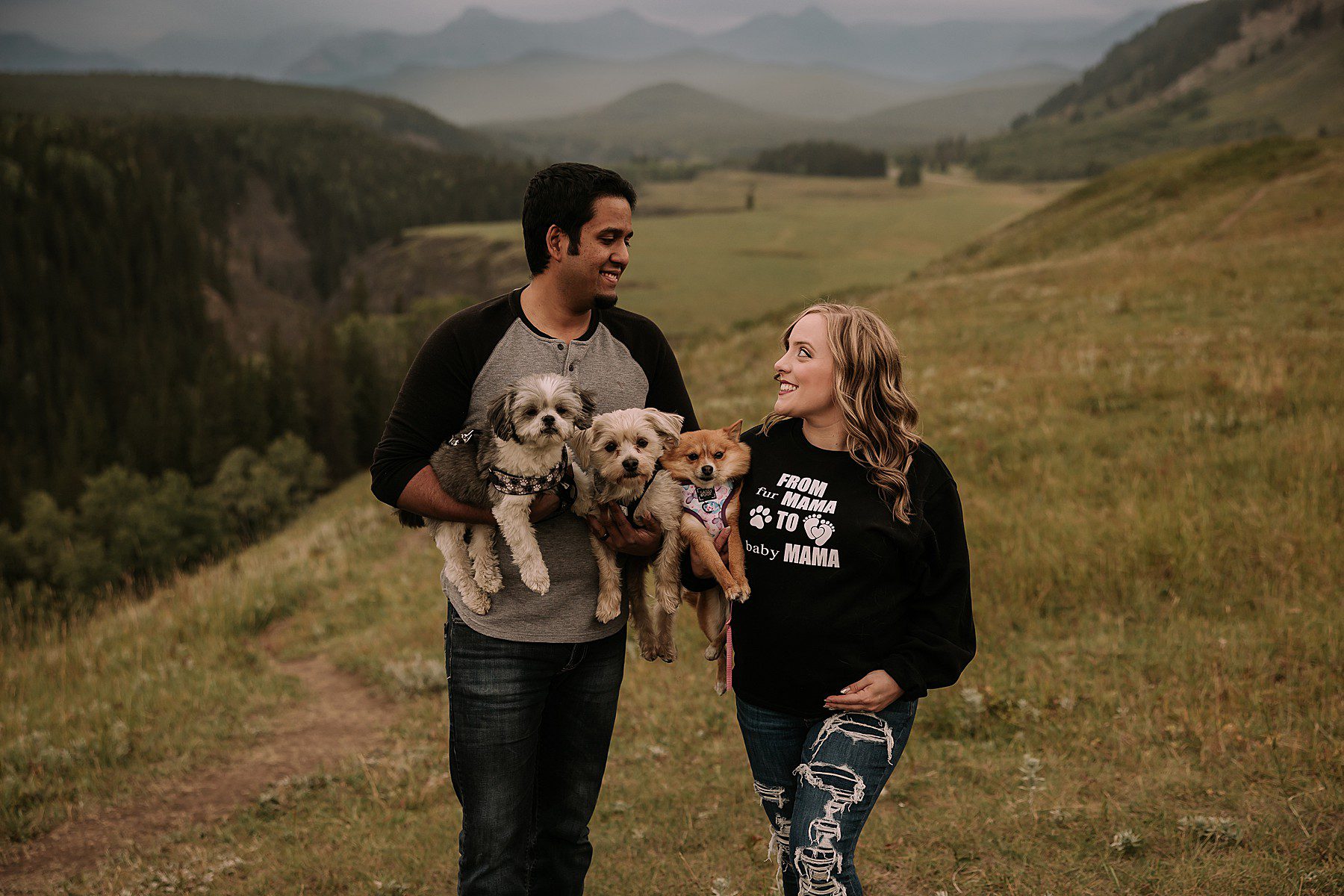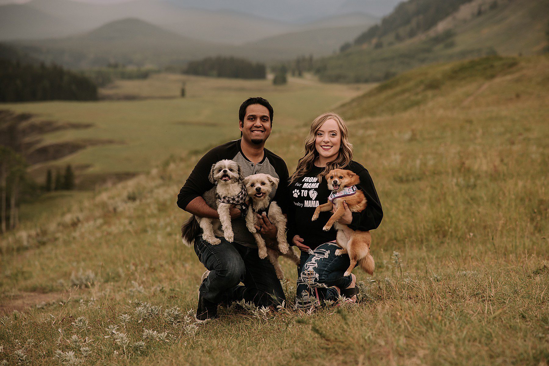 Jeff & Sarah’s dreamy mountain maternity session with their cute Husky!